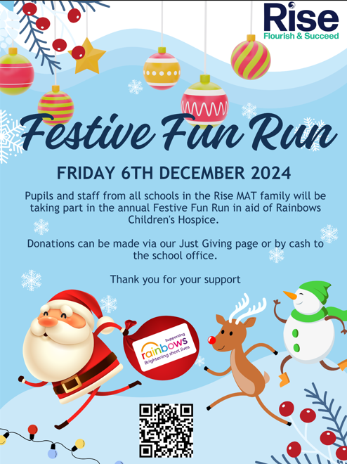 Pupils and staff from all schools in the Rise MAT family will be taking part in the annual Festive Fun Run in aid of Rainbows Children’s Hospice.